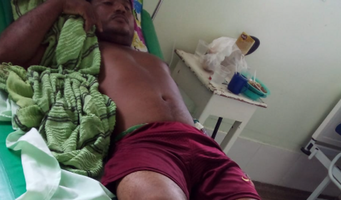 Esse rapaz na foto e meu amigo de pesca. estava no último dia trabalhando em sua roça quando foi picado por uma cobra venenosa (jararaca boi) já foi medicado. após algumas hora a perna começou a incha como mostra a foto. eu como amigo estou tentando ajuda ele pois precisa de ajuda pro tratamento, locomoção pois ele mora no interior de capanema conto com a ajuda de vocês desde já Deus abençoe todos