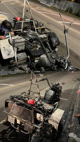 Por algum motivo que ainda não sabemos o tanque de combustível que ficava na parte traseira explodiu e questão de segundos as chamas tomaram conta sendo impossível apagar.