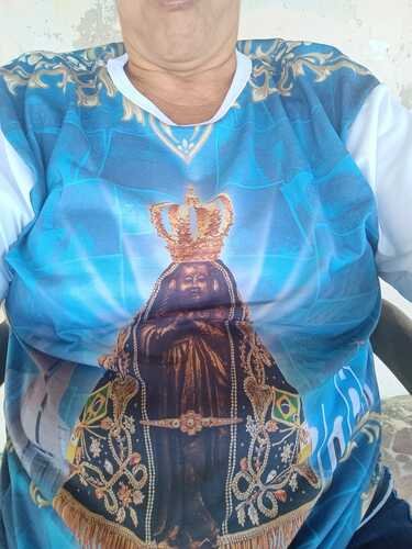 A imagem que mais me tocou foi dela, vestida com a camisa de Nossa Senhora Aparecida, em frente ao bar, que está literalmente caindo aos pedaços.