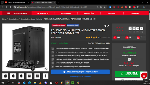 Além disso, como podem ver na foto, minha estrutura de trabalho é bem simples. Tenho uma mesa pequena e trabalho sentado em um puff, o que tem causado fortes dores nas costas devido à má postura. Uma cadeira adequada se tornou tão necessária quanto um novo computador.