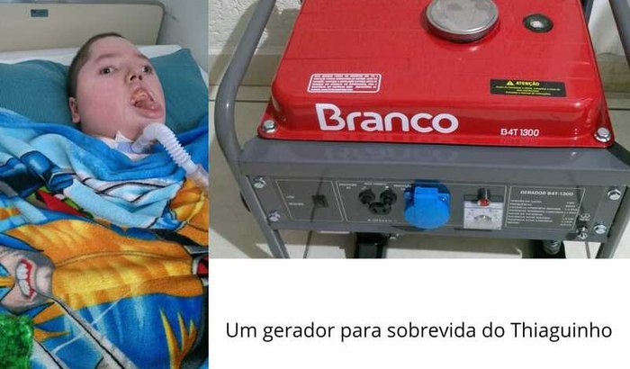 Thiago é uma adolescente acamado de 17 anos, portador de paralisia cerebral grave. Faz uso de gastrostomia, traqueostomia, oxigênio e respira por aparelho a 7 anos. Thiago e totalmente dependente de seus pais para tudo. Devido a forte chuva e ventania que tivemos no dia 03/11 ficamos sem energia em nossa residência por mais de 24 horas. Neste tempo não tínhamos comunicação nem mesmo para solicitar ajuda do SAMU, os telefones não funcionavam. No desespero nos vimos forçados a comprar um gerador para nos socorrer. Com a ajuda de um casal de amigos conseguimos o aparelho que hoje nos será muito útil. Agora temos a responsabilidade de arcar com os gastos que não foram poucos. Contamos com sua ajuda para quitar a dívida. Toda ajuda será bem vinda deixo a chave pix (11) 960178688 que também é nosso contato caso queiram mais informações. Desde já agradeço a colaboração de todos .