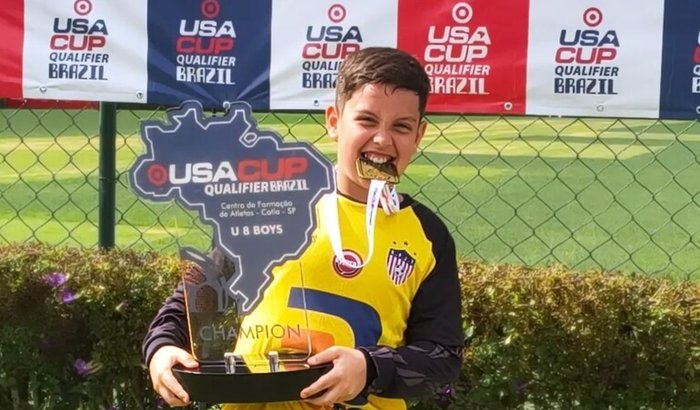 Meu filho é um jovem goleiro e foi campeão sub-8 pelo seu time e conquistou algo enorme: a vaga para disputar um campeonato nos Estados Unidos.