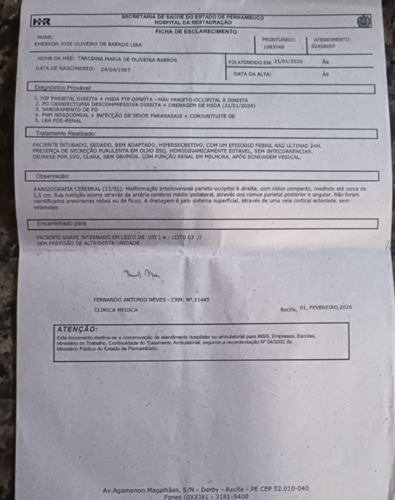 Infelizmente, pelo SUS o processo é muito demorado e cheio de burocracias. Ele ainda não conseguiu acompanhamento adequado com neurologista vascular nem suporte ambulatorial necessário.