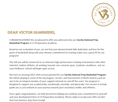 Meu nome é Adriana, sou mãe do Victor Azevedo Guarnieri, um jovem atleta de Petrópolis/RJ que foi aceito na V3 Prep Basketball Academy, um programa de desenvolvimento de atletas de basquete localizado em Toronto, no Canadá.