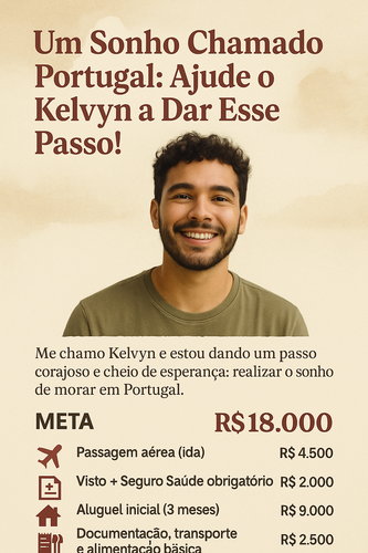 Me chamo Kelvyn e estou dando um passo corajoso e cheio de esperança: realizar o sonho de morar e estudar em Portugal. Não é só uma mudança de país — é uma busca por oportunidades, dignidade, aprendizado e transformação de vida.