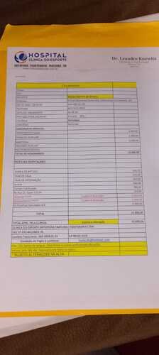 Recebi um orçamento para uma cirurgia que pode mudar minha vida: aliviar as dores, me ajudar a andar de novo e, quem sabe, voltar a ter uma vida mais digna. O valor da cirurgia é de R$ 22.800,00, mas ainda há custos adicionais com hospital, medicamentos e transporte, além da possibilidade de reajuste se não conseguirmos realizar dentro do prazo de 45 dias.