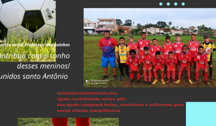 Precisamos arrecadar 5.000 reais para comprarmos o uniforme, bolas e equipamentos de segurança para os atletas.. esse projeto é voluntário e necessita do apoio de todos.. conto com a colaboração de cada um … muito obrigada e que Deus os abençoe