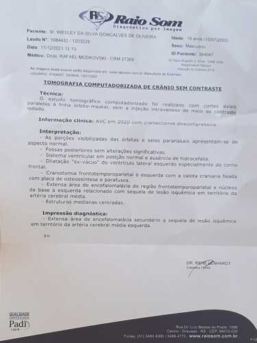 3. Exame/laudo/foto Wesley/ pedido cirurgia 17/12/2021 - Rejeição craniana