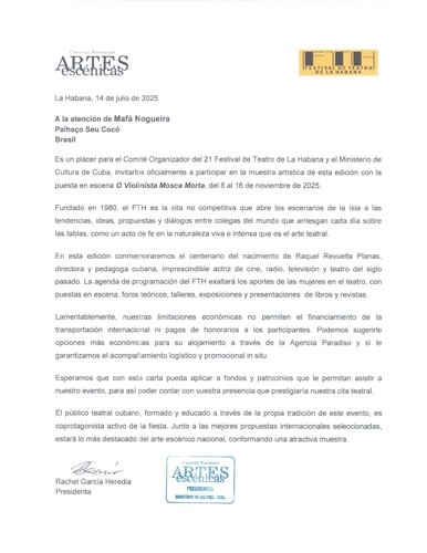 🎭 Vaquinha destinada a levantar recursos para viabilizar a participação de Seu Cocó e equipe, com o espetáculo O Violinista Mosca Morta selecionado no 21º Festival de Teatro de Havana que acontecerá entre os dias 08 e 16 de novembro de 2025 em Havana, Cuba. 🇨🇺