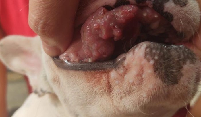 Com apenas 4 meses já está passando por tanto… um tumor enorme na boca que inclusive está dificultando a alimentação.