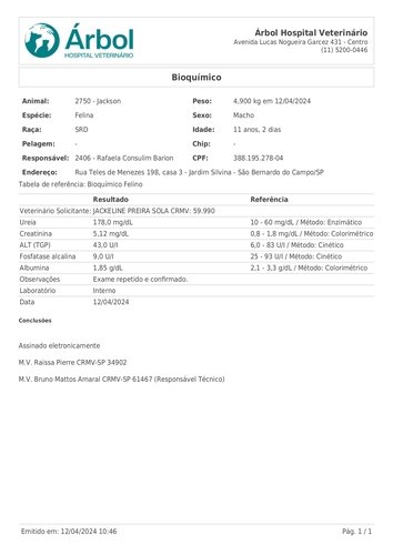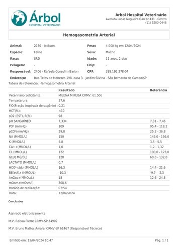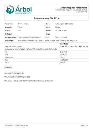 Resultado dos exames: