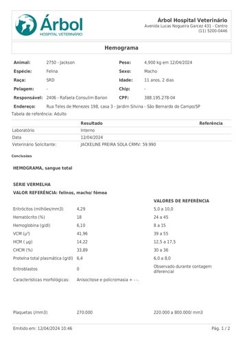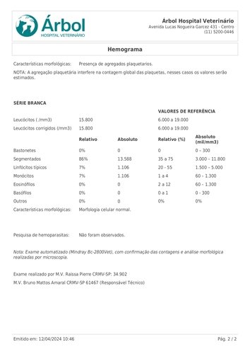 Até sair os resultados esta precisando de transfusão de sangue por conta da anemia.