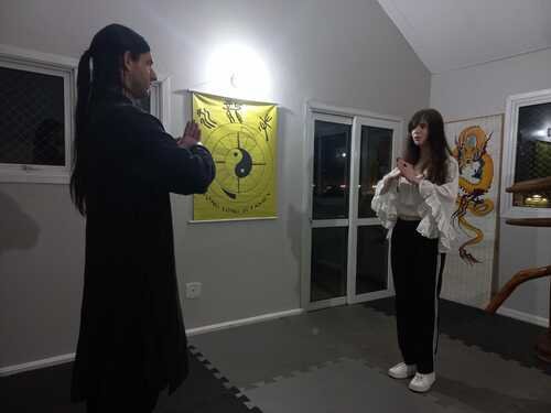 (Primeira aula de Kung Fu em Porto Alegre e a primeira aluna)