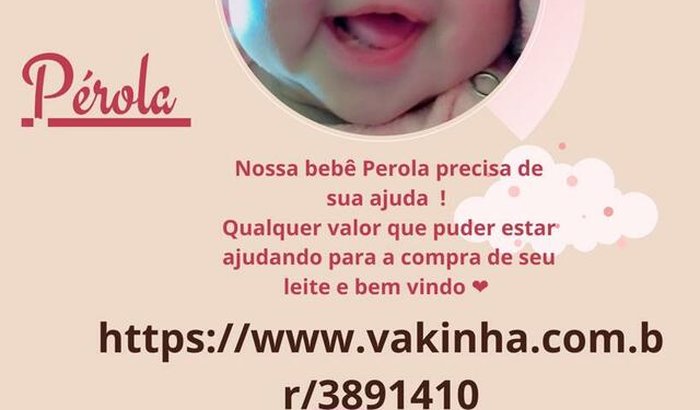 a nossa milagre pérola ficou internada um mês no hospital hct com Bronquiolite e pneumonia, descobrimos o refluxo dela e começamos os medicamentos e a troca do leite, ela está tomando um leite que se chama neocate a lata custa 284,00 de 400gr e dar pra 4 dias, estamos fazendo essa vakinha pra custear essas primeiras latas até a justiça liberar, quem não tiver condições de ajudar, ajude compartilhando, ela precisa desse leite é pela saúde do nosso bebê milagre