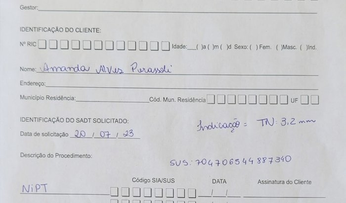 Para que possamos descobrir o que está causando essa alteração, preciso realizar o exame chamado NIPT, que nada mais é do que a coleta do meu sangue para investigação de doenças que a bebê possa ter, são elas: