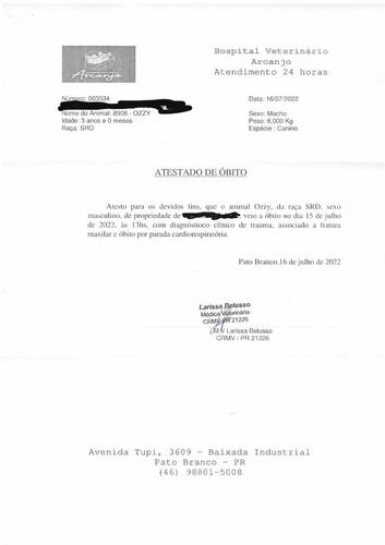 E infelizmente no dia 15/07/2022 ele veio á falecer, não resistiu aos ferimentos.Venho através da vakinha para pedir ajuda para quitar a conta, já que não tivemos apoio algum.Mas pelo menos temos a certeza que tentamos salvar ele e ele não sofreu e não ficou agonizando abandonado na rua.
