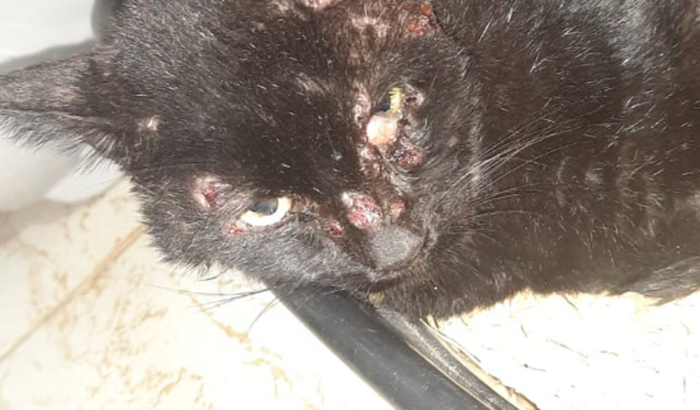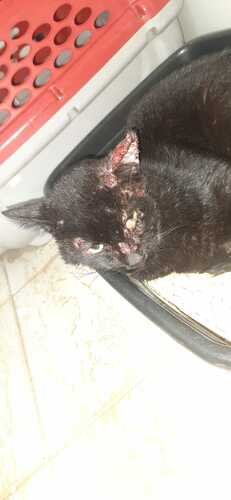 Olá, esse gatinho da foto é o Baguero, ele apareceu no quintal todo machucado, ao levarmos ao veterinário foi diagnosticado com Esporotricose.Gastamos com os primeiros socorros um valor de R$ 795,00, onde foi feita a sedação, a limpeza, e a ver tudo