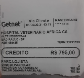 Gastamos com os primeiros socorros um valor de R$ 795,00, onde foi feita a sedação, a limpeza, e a medicação para infecção e dor.