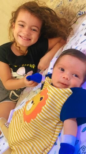 Olá, me chamo Patrícia, tenho 30 anos, sou mãe de uma linda menina , Manu e agora do Miguelzinho.Esse ano de 2023, engravidei e foi uma gestação muito sofrida, por várias vezes tive princípio de aborto e muitas outras complicações, como pré eclampse, o que fez o Miguel vir ao mundo com 37 semanas de gestação (26/10/23) , pois ele já estava entrando em sofrimento fetal. Miguel nasceu com 43 cm e 2610 kg e foi diagnosticado com uma fosseta sacral