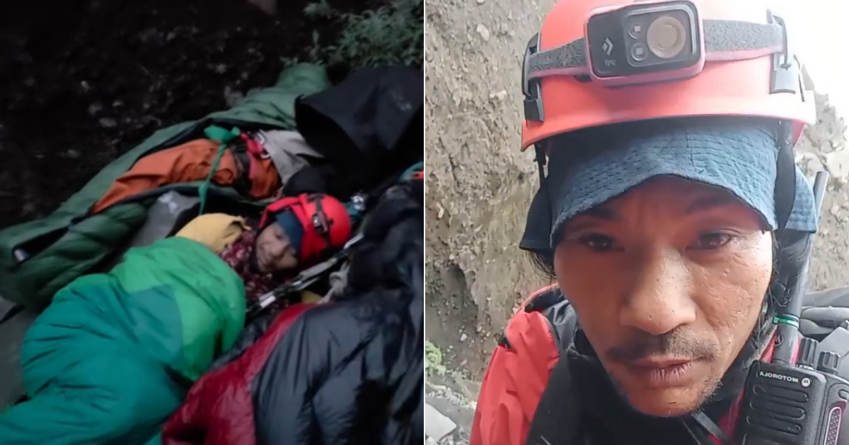 E passou a noite toda ao lado de Juliana, preso numa rocha, amarrados por corda com frio e medo — pra não deixar ela sozinha e correr o risco “dela” cair no precipício.