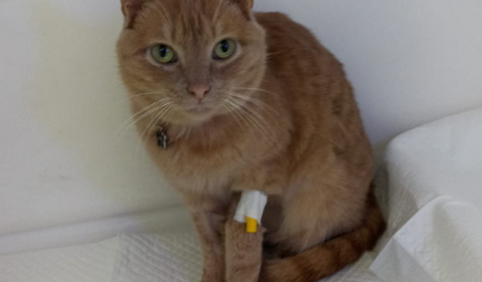 Fui diagnosticado com Cistite Necrótica e precisei ser internado para fazer o tratamento. Com a doença descobrimos também que eu sou Felv positivo, o que deixou meus papais mais preocupados ainda. Tive muita hemorragia, perdi muito sangue e fiquei bem fraquinho :(
