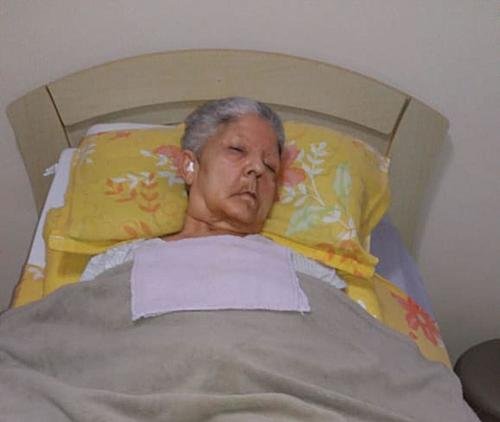 A dona Elza mãe da nossa amiga é uma senhora de 66 anos que a 10 anos tem demência fronto temporal e está acamada a 2 anos, sem conseguir se locomover e falar.