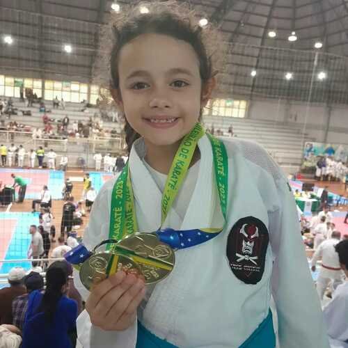 Olá, meu nome é Beatriz, tenho 9 anos e sou apaixonada por karatê! Apesar da pouca idade, já conquistei 9 medalhas de ouro, 2 de prata, 4 de bronze e 2 troféus de 1º lugar em competições. Agora, enfrento um dos maiores desafios da minha carreira: participar do Mundial de Karatê na Argentina!