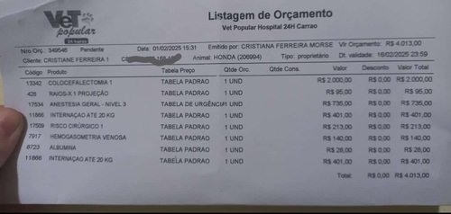 Estou colocando um valor a mais por conta de taxas a serem descontadas e para uma forcinha no pós-cirúrgico.
