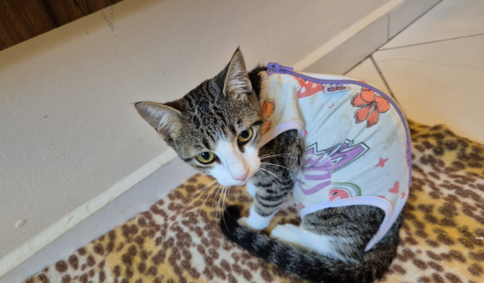 Faz 9 dias que eu castrei, e como sou muito espoleta, na última segunda feira eu me enrosquei na tela qué me protege de sair, e meu papai nao estava em casa, fiquei muito tempo presa, e minha patinha perdeu a circulação, sendo assim vou precisar amputar minha patinha.