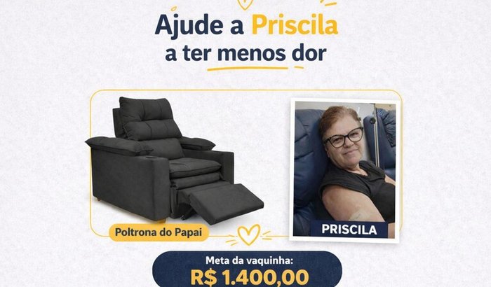 Priscila está enfrentando um câncer nos ossos e a dor tem sido constante. Ela não consegue nem se deitar direito — qualquer posição machuca muito.