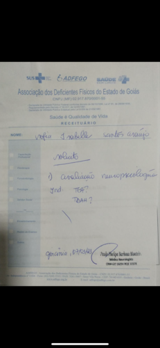 A Sofia está precisando de uma avaliação médica , para ser emitido um laudo para que possa ter acesso ao Tratamento adequado . Precisamos fazer Particular , pois pelo SUS existe uma fila com tempo mínimo de 2 anos .