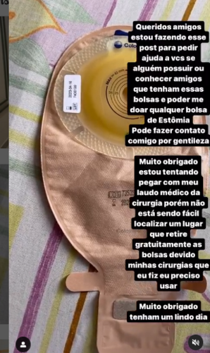 “Uma bactéria me pegou fiquei 2 meses internados passei por uti e perdi parte o entestino aonde vir a usar a bolsa de colostomia perdi 30 kilos na internação hj já ganhei 15 depois desse tempo Já fiz 3 cirurgias neh