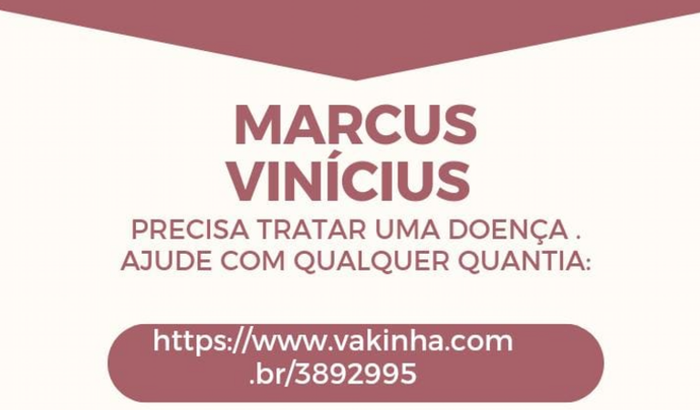 Olá eu sou Marcus tenho 5 aninhos e tenho cogitação intestinal e no momento estou precisando fazer muitos exames que são muito caros e com o resultado desses exames os médicos vai ver se eu preciso fazer ou não cirurgia. Queria pedir ajuda para vocês em qualquer quantia já vai ajudar bastante obrigado(a) por cada um que ajudar