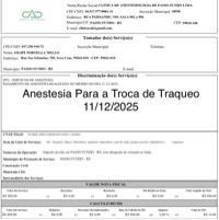 # Abaixo seguem alguns comprovantes e notas de anestesias e procedimentos: