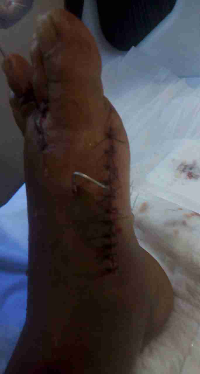 Logo ao cair no chão, já comecei agonizar com muita dor em minhas costela e em meu pé esquerdo. Com a chegada da ambulância, após cortarem minha bota, foi constatado que havia uma fratura exposta e devido a tamanha perca de sangue, eu já estava em um quadro de hemorragia.