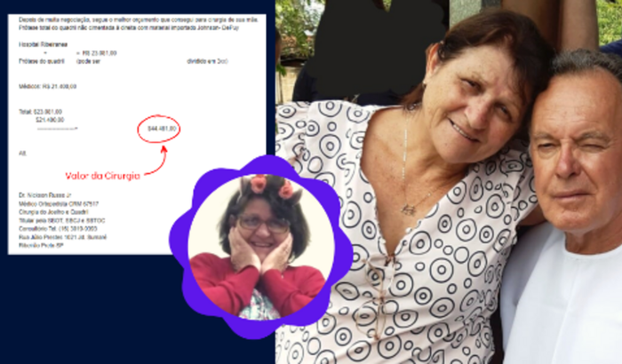 Mas isso mudou de uns anos pra cá, quando ela começou a sentir algumas dores na perna direita que foram piorando muito com o tempo. Depois de passar por vários médicos, tanto pelo SUS quanto no particular, ela recebeu o diagnóstico: as dores são causadas por um desgaste no osso do quadril e a única solução é uma cirurgia para colocar uma prótese de quadril.