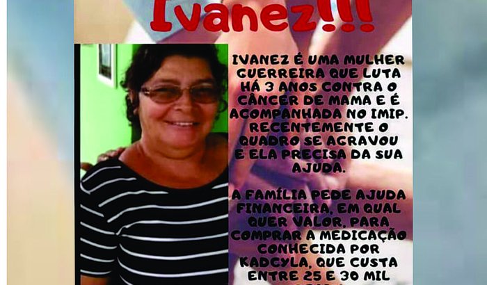 Me chamo ivanez Maria de Moura, no mês de março de 2018 fui diagnosticada com o câncer de mama através de um alto exame no mês do seguinte conseguimos uma vaga no Imip e foi feita uma série de exames e biópsia, no mês de maio começou a químio branca , foram 12 sessões e em seguida foram feita 4 químio da vermelha. Em novembro de 2018 encerramos a quimio e teve uma pausa para descanso. No 15 de janeiro 2019 foi feita a cirurgia de mastectomia com o esvaziamento da axila, depois que mim recuperei da cirurgia retomei com as químio até novembro de 2019. Em dezembro foi feita a última consulta para ver se teria alta , nos exames solicitados a médica identificou um novo nódulo por trás da Cicatriz da mama retirada e também novamente uma lesão no osso externo que é o peso em frente ao coração e novamente fui diagnosticada com o câncer . Foi então que retomamos o tratamento com um novo ciclo da químio, Só que dessa vez tive muitas reações e a médica solicitou uma tomografia que identificou que meu tratamento não estava surtido efeito, meu nódulo invés de diminuir ou estacionar , vem aumentando de forma significativa e com essa piora minha médica passou novos exames e terei que mudar meu tratamento e começar a tomar 3 ampolas que os médicos chamam DDM1 a cada 21 dias , que custa em média 9.000,00 cada e não tenho condições financeiras para comprar e então venho por meio dessa vaquinha pedir a ajuda de vocês.
