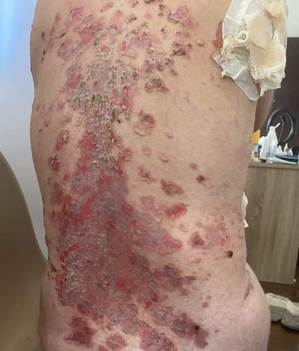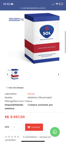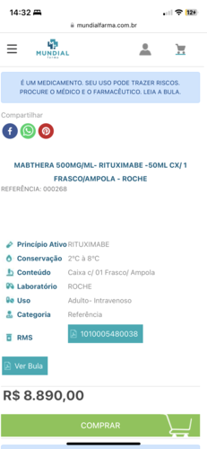 Diagnosticada em 05/2022 com doença autoimune pênfigo vulgar. Lesões bolhosas hemorrágicas por todo corpo e couro cabeludo, cavidade oral. Atualmente estou tentando estabilizar com corticoide e imunossupressor de forma oral, como não estamos tendo retorno satisfatório a alternativa é o imunobiológico, por ser de alto custo a alternativa é via judicial, mas se conseguir comprar eu consigo tomar a medicação em menos tempo. Por menor que for o valor da sua ajuda, é uma ajuda importante diante de tudo. Pra início do tratamento preciso de duas ampolas do retuximabe.