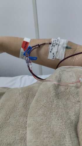 No dia 22 de julho de 2025, tive um sangramento tão forte que precisei ser internada. Minha hemoglobina caiu para 6,6, o que me deixou extremamente fraca e com risco para a minha vida. Recebi transfusão de sangue para conseguir me recuperar minimamente.