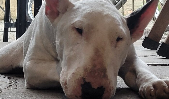 Esse é o Bolt, meu cachorro e meu grande companheiro. Ele foi diagnosticado com pedras nos rins, uma condição que causa muita dor e pode trazer complicações graves se não for tratada com urgência.