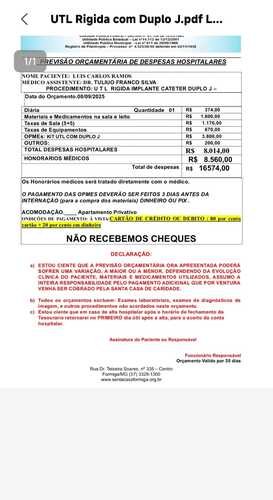 O custo da cirurgia de Ureterolitotripsia Rígida com Duplo J e de todo o tratamento é de R$16.574,00. Este valor inclui a cirurgia, honorários médicos, internação, materiais e medicamentos, como demonstrado no orçamento.