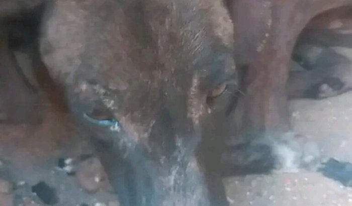 Essa cachorrinha foi resgatada da rua em estado muito grave: extremamente magra, com suspeita de sarna e precisando de cuidados urgentes.