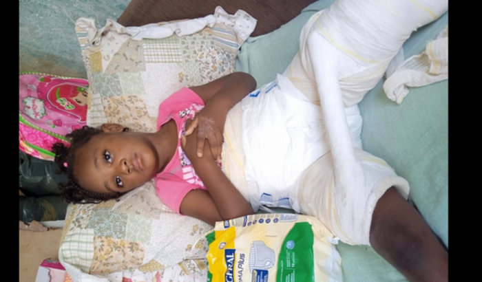 Olá, sou á Laís tudo bém com vocês? Estava brincando com meus irmãozinhos no terreiro de casa, e um portão da minha casa caiu sobre meu corpo, me machucando um pouco. Fraturei o fémur da perna esquerda e tive algumas escoriações leve. Estou precisando fazer uso de três em três horas de fralda descartável tamanho geriátrica por conta do gesso. Pois eu não consigo tá indo ao banheiro, para tá fazendo minhas necessidades fisiológicas. E também meus pais vão tá gastando lenço humedecido, pomadas e remédios. O meu pai no momento, não trabalha com carteira assinada, fazendo apenas bicos para nos atender com dignidade, e além de mim tenho mais 5 irmãos pequenos.