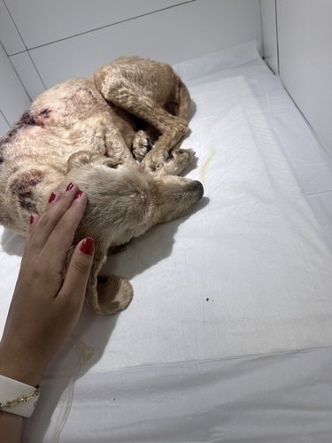 Pessoal sou a Izabella , a Maya é minha cachorrinha que estava perdida e foi resgata. Estamos precisando de ajuda pra cobrir a internação dela. Toda ajuda é bem vida 😢 . Ela está com uma infecção na pele , umas fraturas na costela e bastante debilitada. Está tomando medicação e se alimentando um pouco com ração úmida