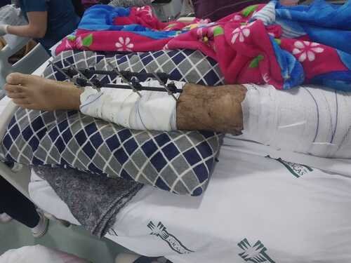 Onde teve fratura exposta na perna sendo necessário uma cirurgia com enxerto para evitar a amputação.