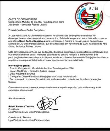 Sou Dulceane,e estou fazendo essa vaquinha pra ajudar meu irmão Gean ir em uma competição de jiu-jitsu para-atleta em Abu Dhabi em Emirados Árabes ele é bicampeão mundial na modalidade jiu-jitsu No Gi, Bicampeão Brasileiro, campeão paulista, campeão mundial com kimono e como não tem patrocínio para custear os gastos estamos tentando arrecadar esse valor pra ajudar.Ele recebeu o convite e já está com a presença confirmada pra novembro de 2026.