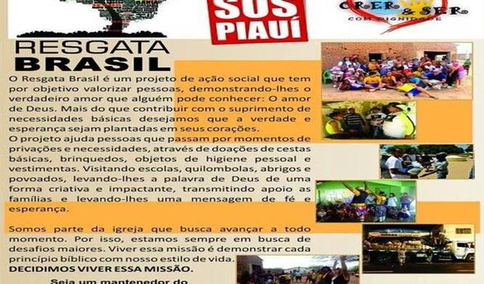 PROJETO RESGATA BRASIL - CALDEIRÃO GRANDE-PI - BRASILThumb prbThumb 1618547 521364594628136 722644496 nThumb rb3Thumb rb4Thumb rb2Thumb rb1
