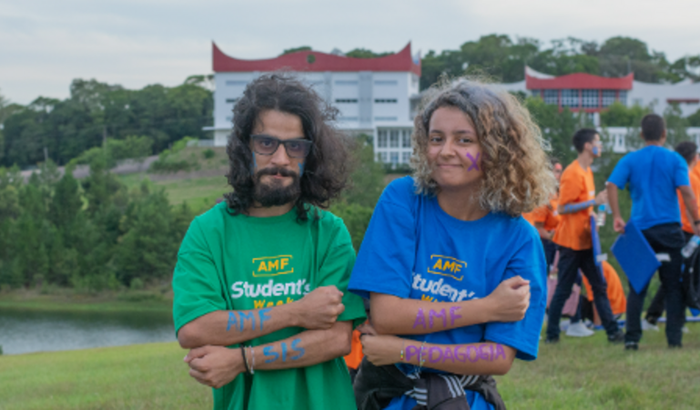 Olá! Somos Lucas e Michaele, estamos cursando o primeiro semestre de Pedagogia e Sistemas de Informação.