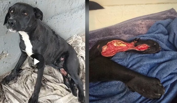 Sem qualquer tipo de ajuda, ele permaneceu por dois dias no local, chorando de dor e se arrastando, completamente ferido e abandonado.