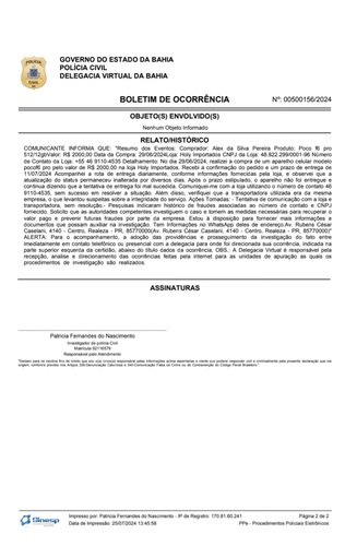 - Boletim de Ocorrência: Protocolo 2024/0000421187-5
